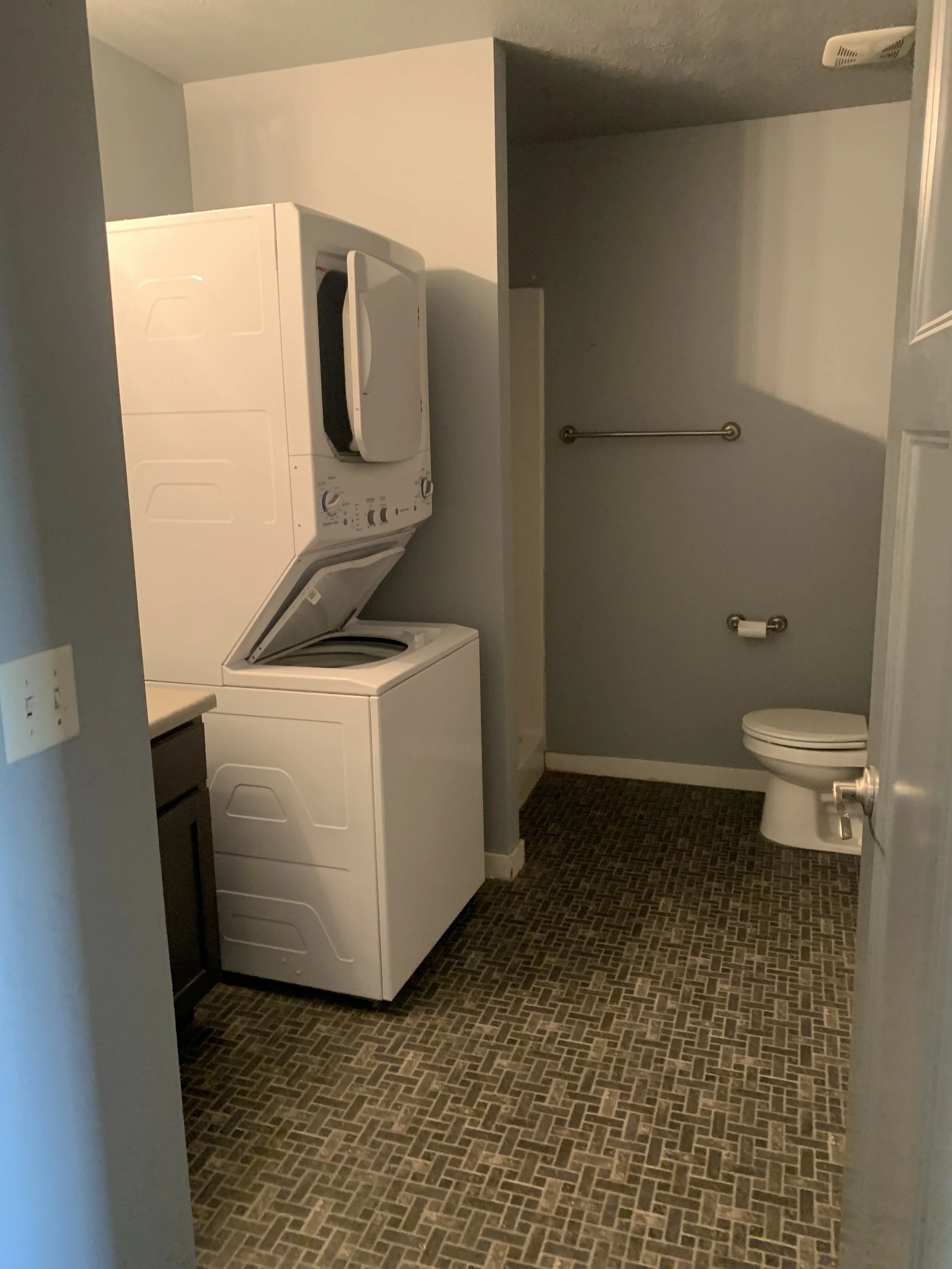 Located on the north side/backside of the building, this unit offers its own private entrance, providing added privacy and convenience. The apartment features central air conditioning, off-street parking, and an in-unit stackable washer and dryer.
