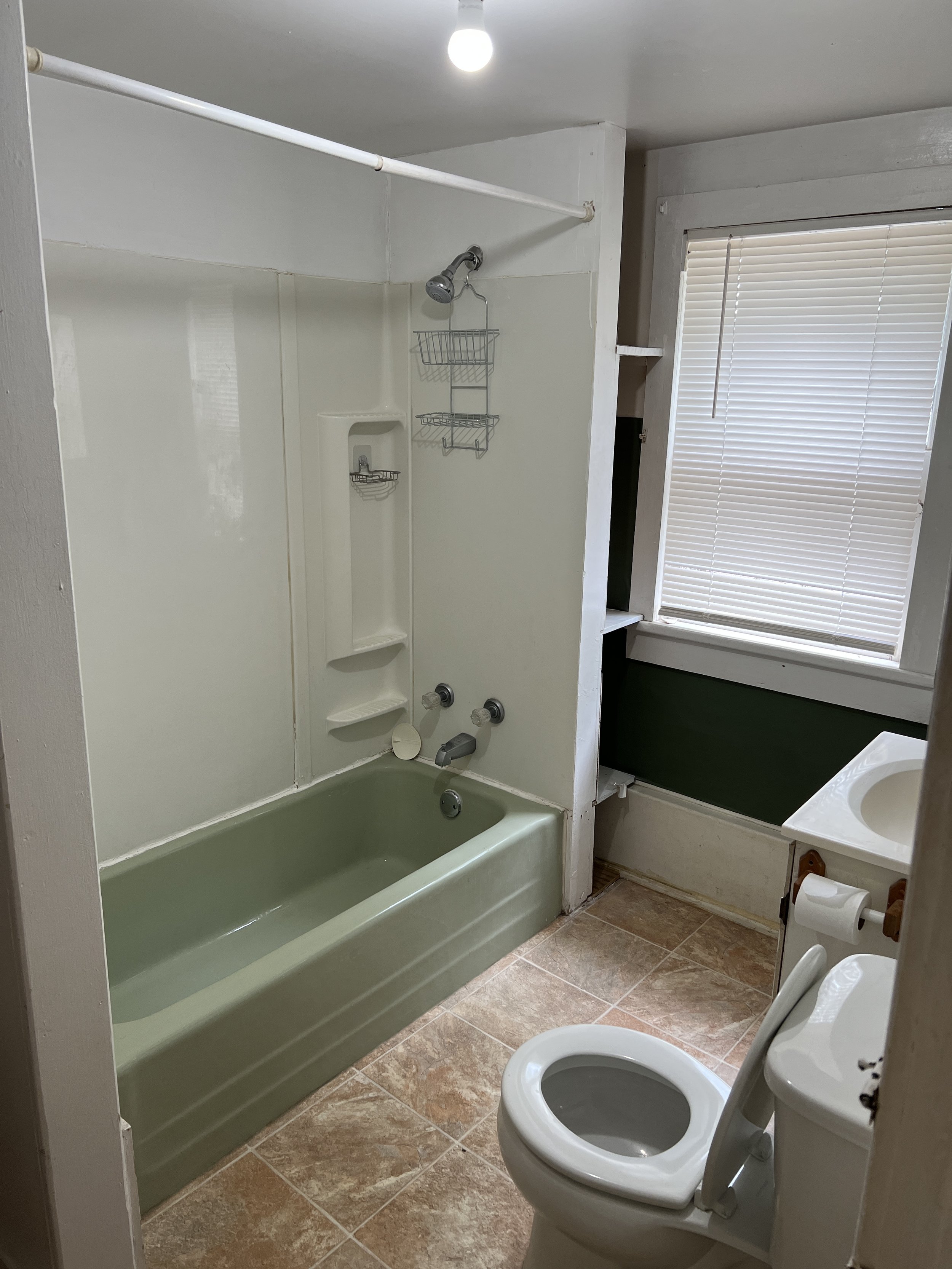 This studio apartment is in a tri-plex building. It has off-street parking along with a large kitchen big enough to have a table in it. There are two closets for storage in the bedroom/living room space and the bathroom has a full bath. There is an in-unit washer/dryer all-in-one machine. Window air conditioner. Up stairs unit.